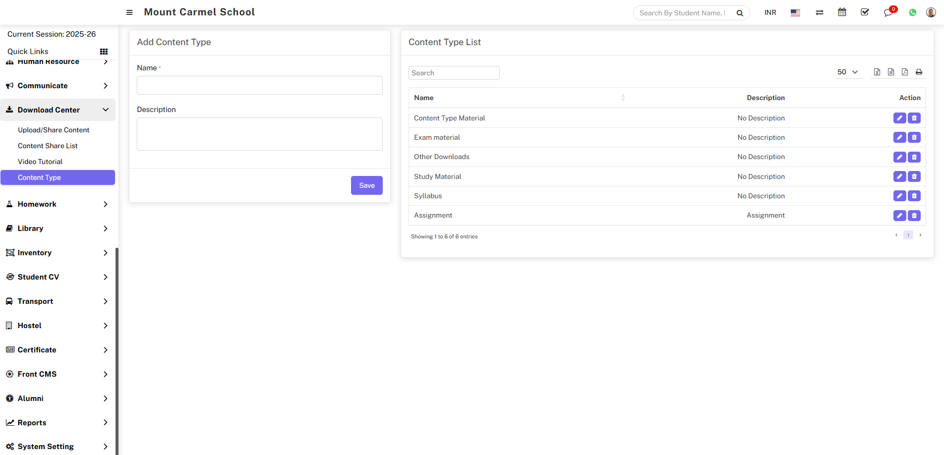 To add a content type, go to Download Centre > Content Type. Now enter the name of the specific content as well as a description of the content type, then click the Save button, your newly added content type will now appear in the content type list.