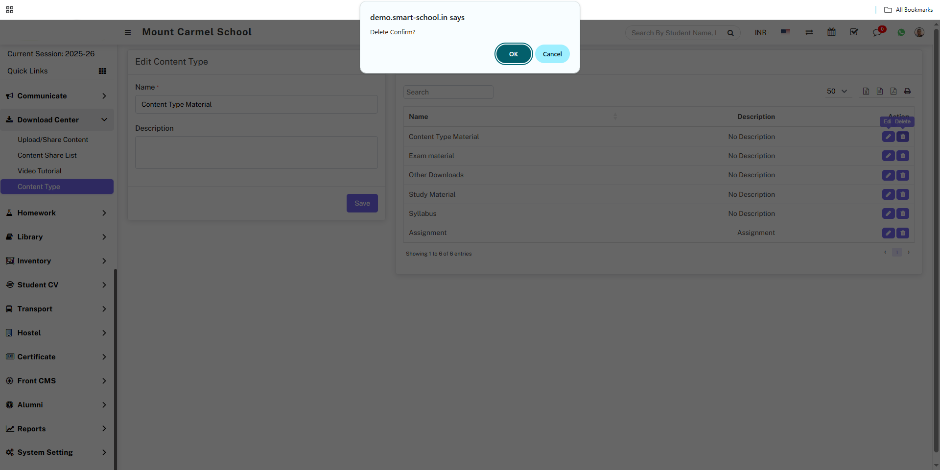 click on OK button content type will be deleted successfully.