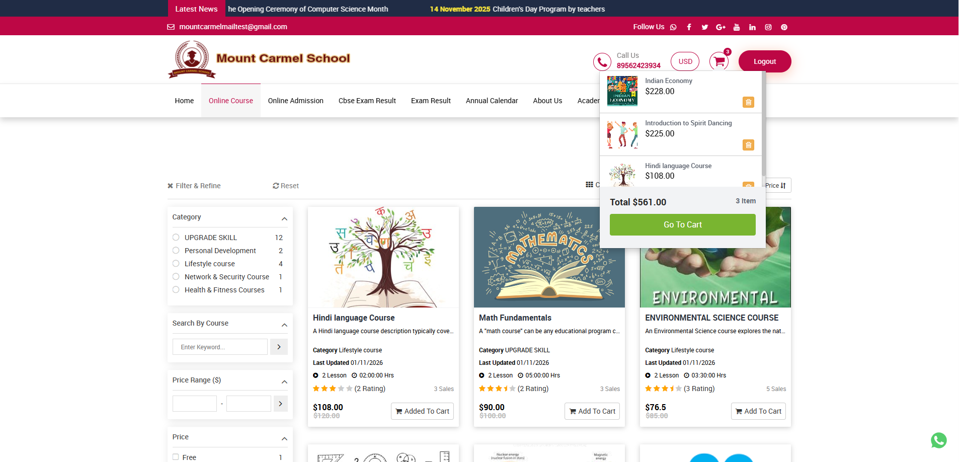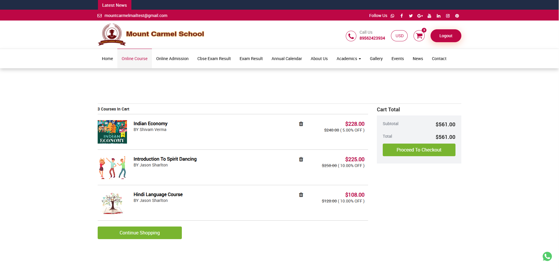 Now in this cart you can see added course and its price as well as you can see sum of total amount of all the courses which you added in the cart.
