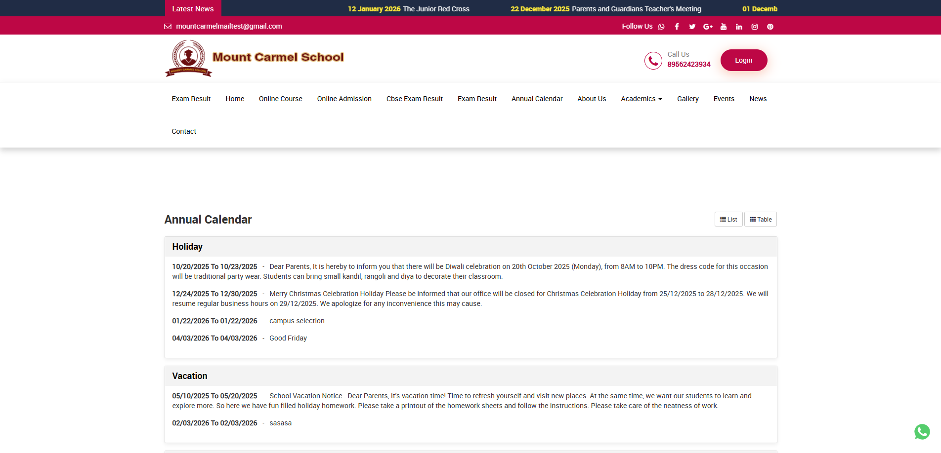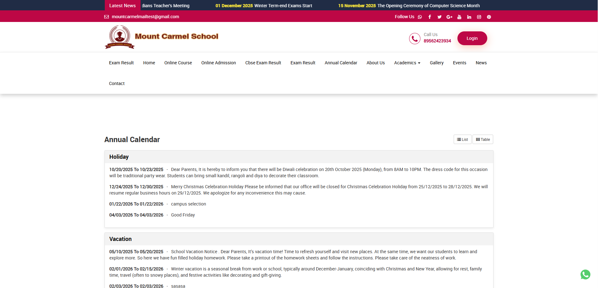 This module allows administrators to efficiently manage and communicate important events, holidays, annual functions, and activities throughout the academic year.
