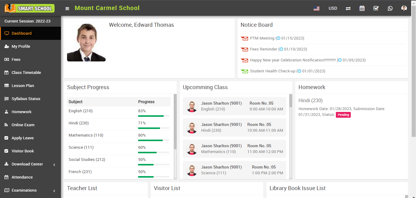 Now, fill the credential of the student and click on the sign in button, student profile will be open.