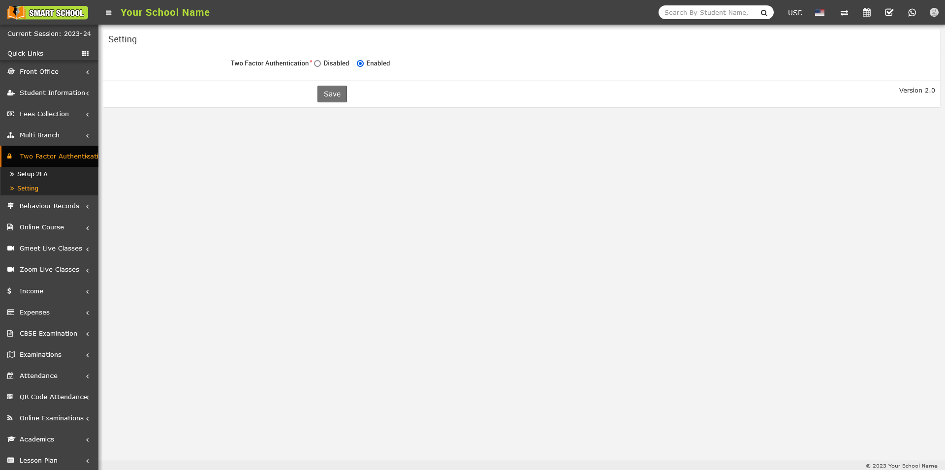 Note: When you install Two Factor Authentication in your Soft School, it will show you default disabled, for using you have to enabled it.