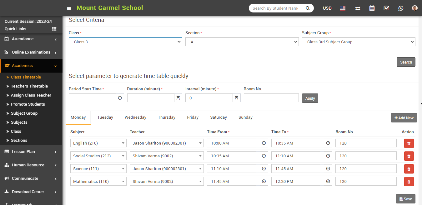 Note:- please note that if you have assigned teacher as a class teacher to the class then this teacher will be able to manage their assigned class related all data like Homework, Timetable etc even course/subject not assigned to this class teacher.